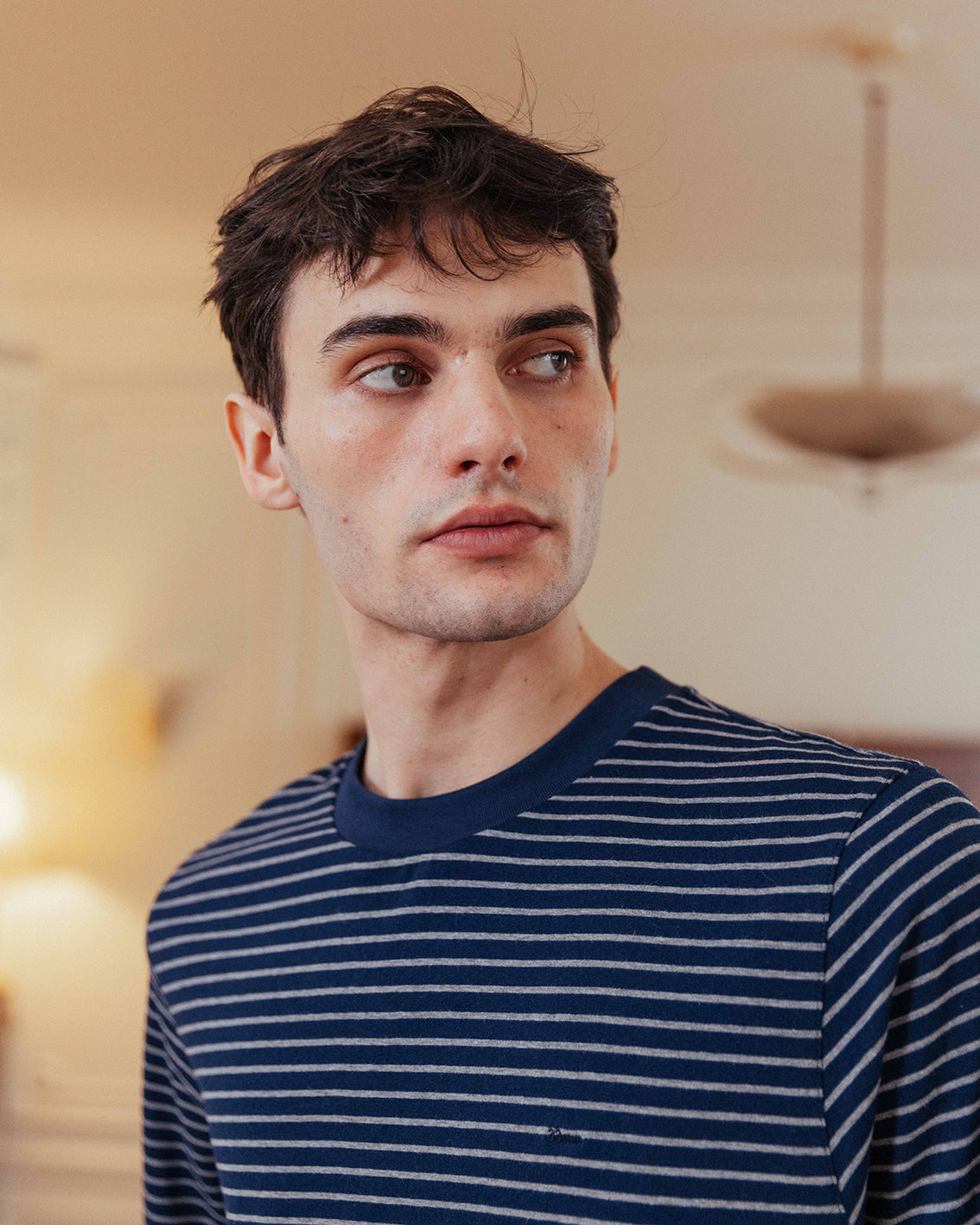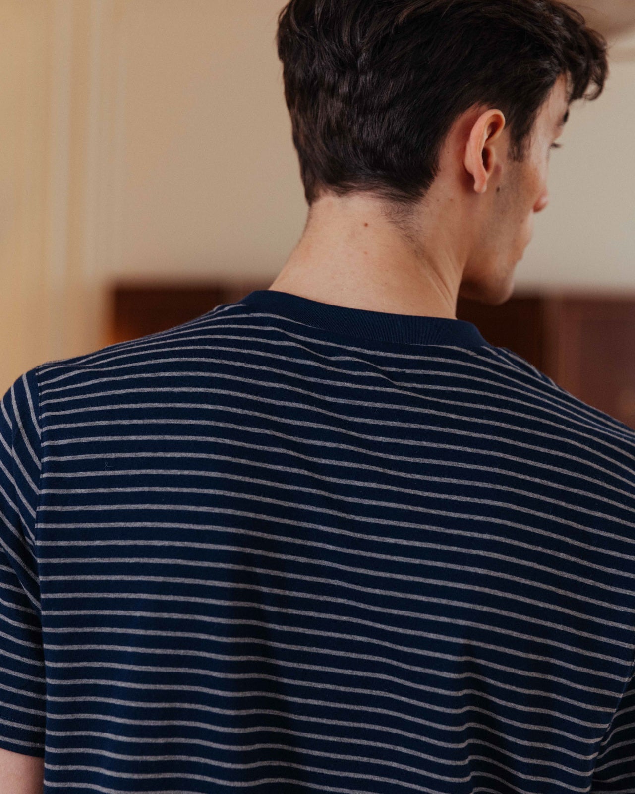 • Contrast navy crew neck