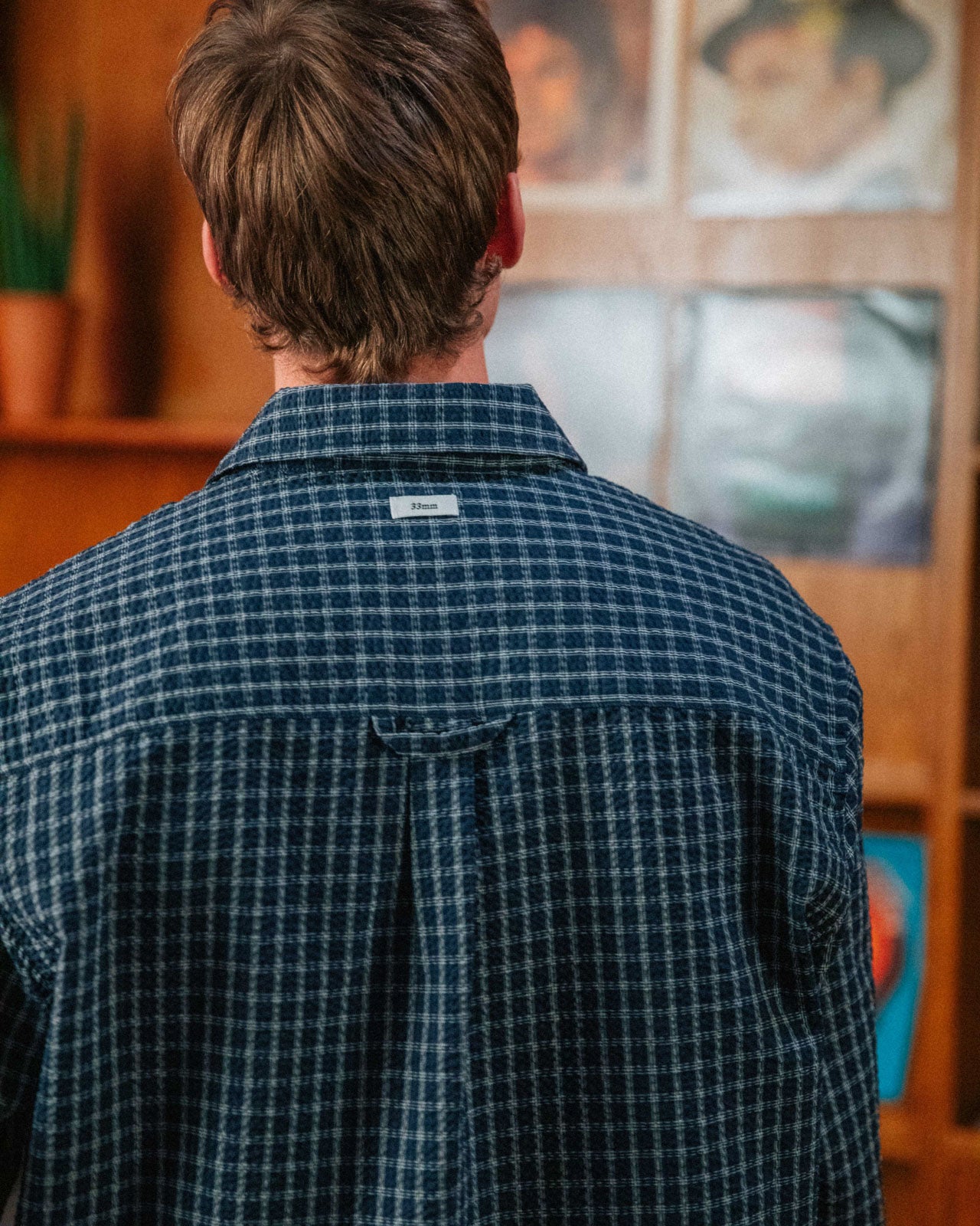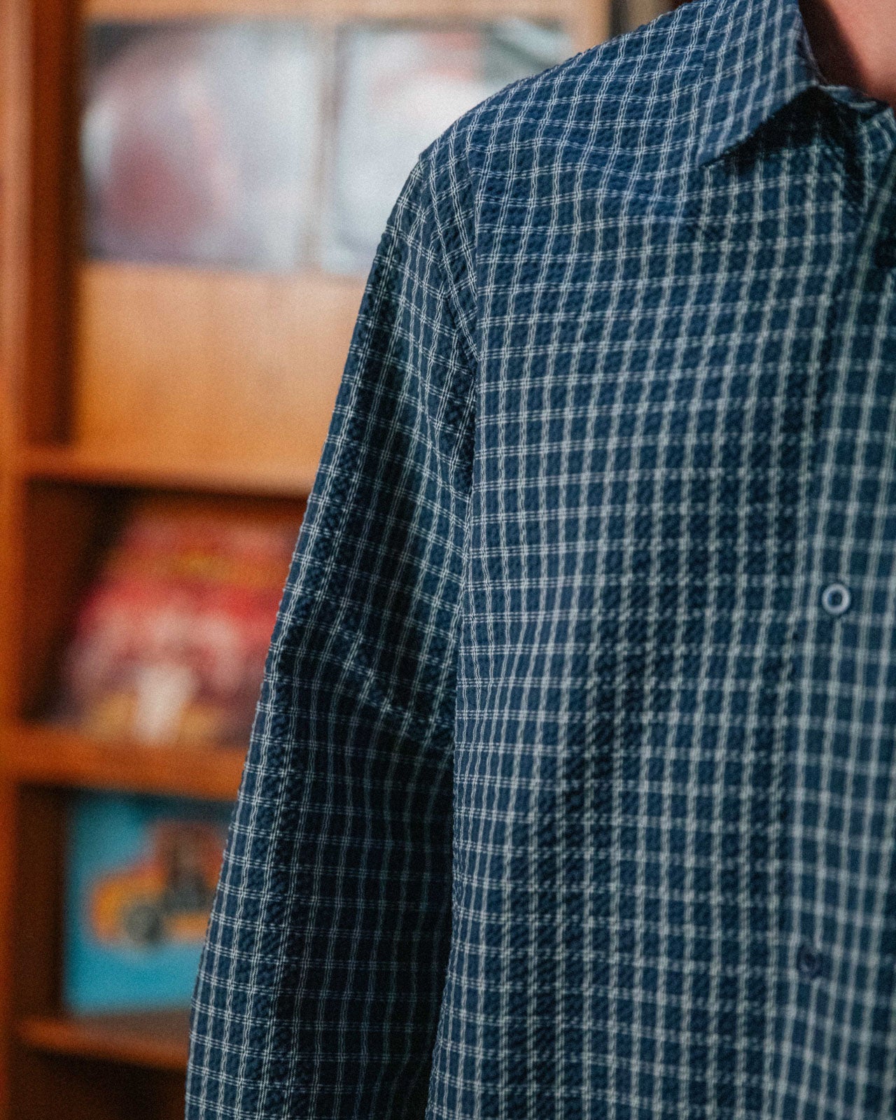 The long sleeved counterpart of our beloved Josiah. In our signature boxy fit with a deep blue base and white check. It's 100% cotton with a seersucker texture to add detail and reinforce structure.