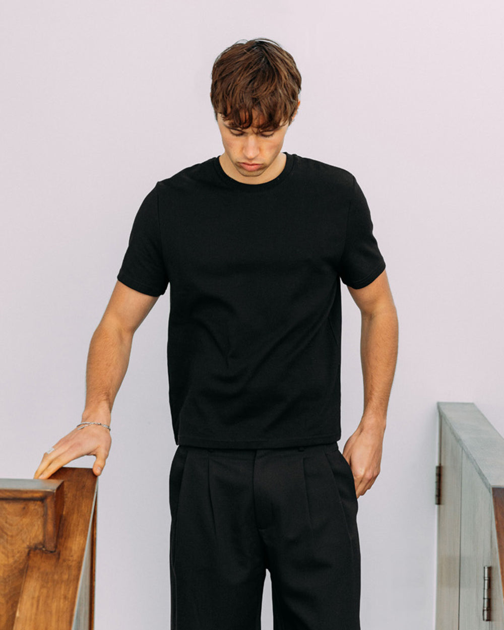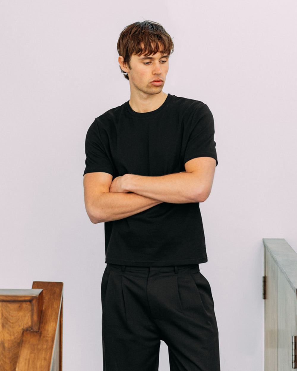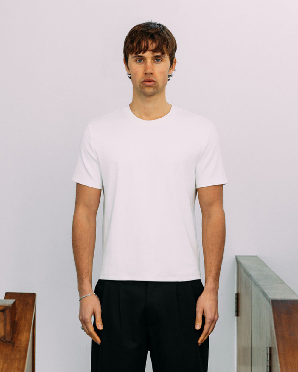 A slightly cropped tee inspired by the great Marlon Brando. Designed with a slim fit that contours the body, sitting neatly at the waistband with no tuck required. We apologise in advance that no other tee will compare.