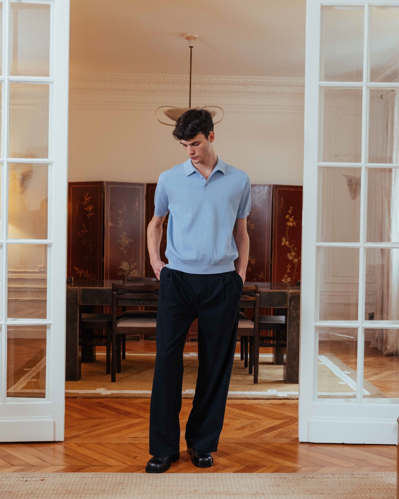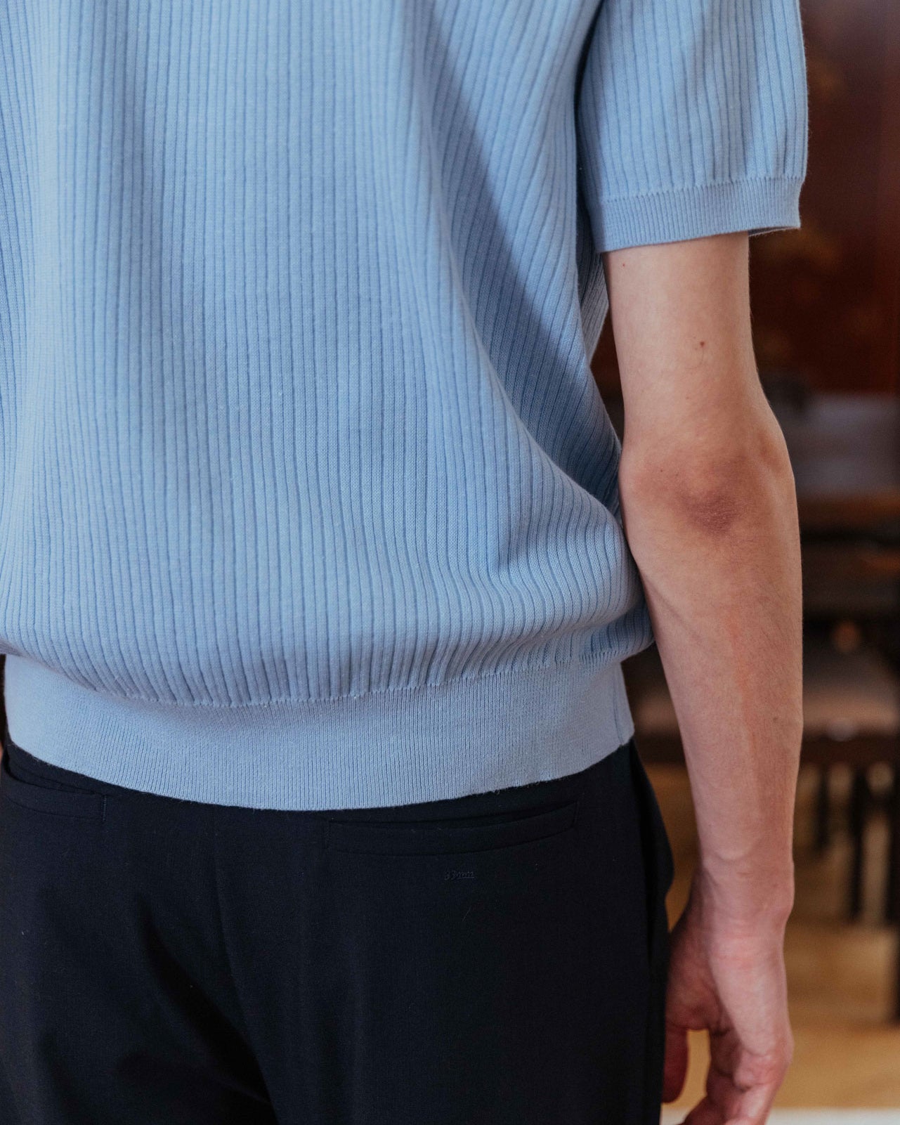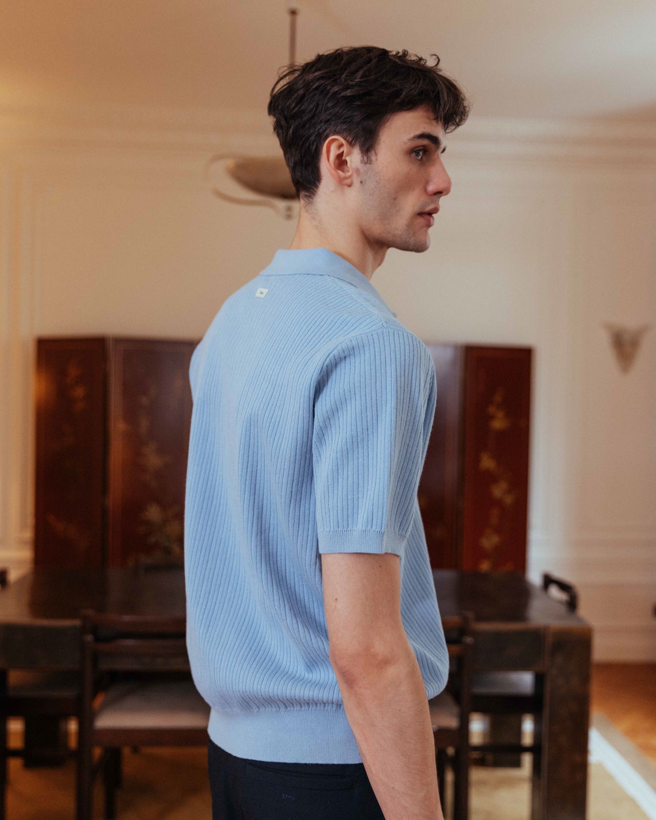 In a classic 1950s style, James Dean would have reached for this top again and again. Its timeless polo cut and soft ribbed texture come together to make casual style feel refined and effortlessly elegant.