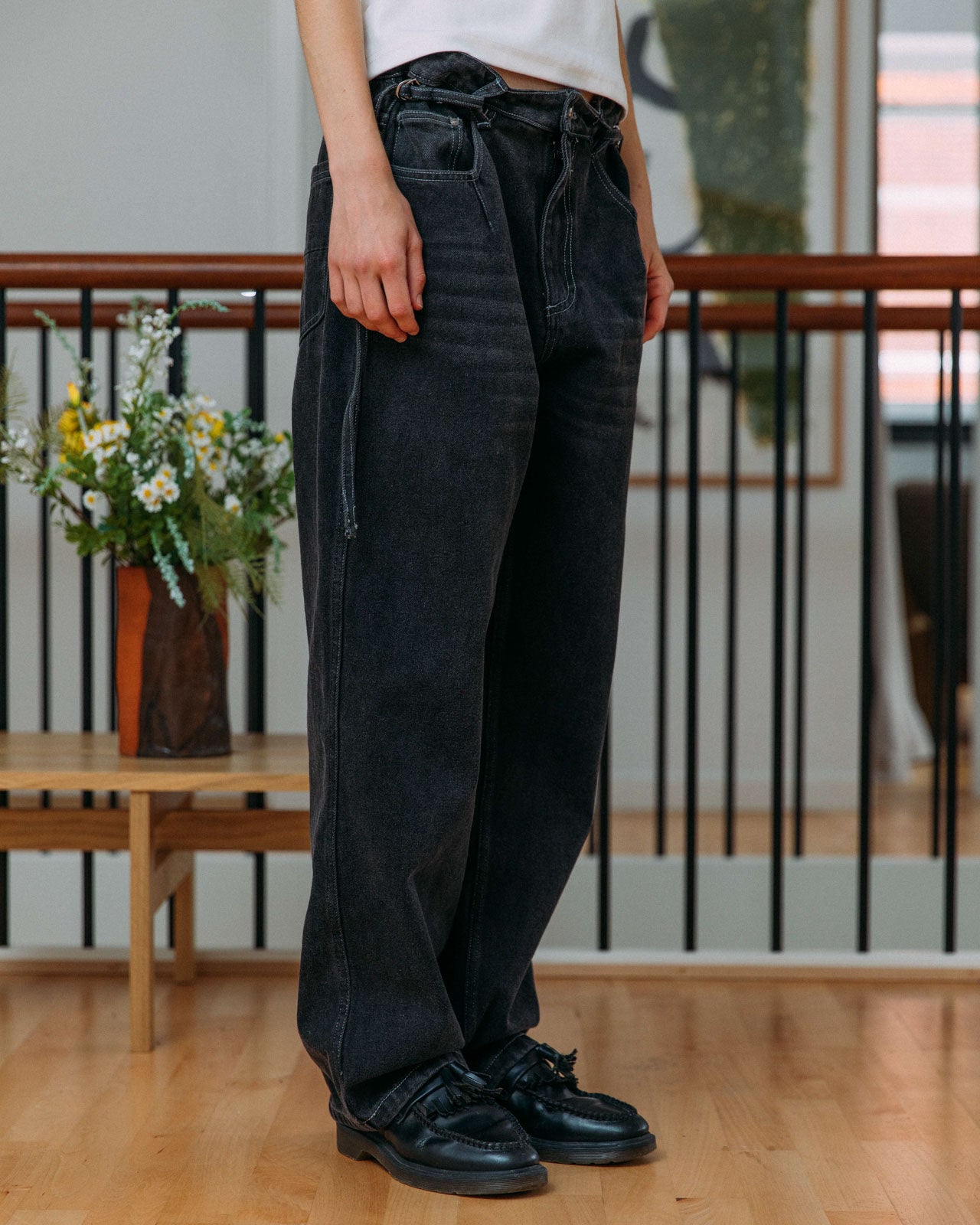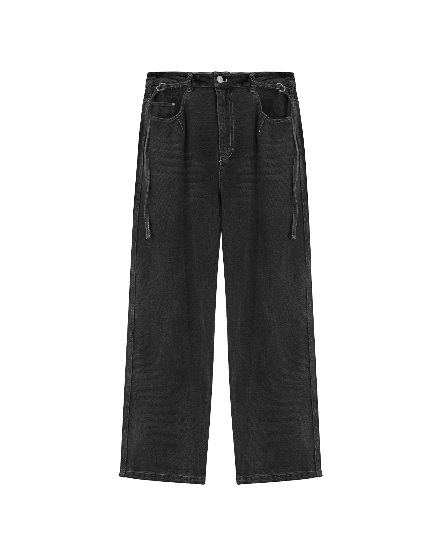 Introducing Eli, the perfect stacked straight leg washed jeans made for the everyday. Made with 100% cotton and features branded hardware, exterior waistband belt adjustment, two front pockets and two back pockets.