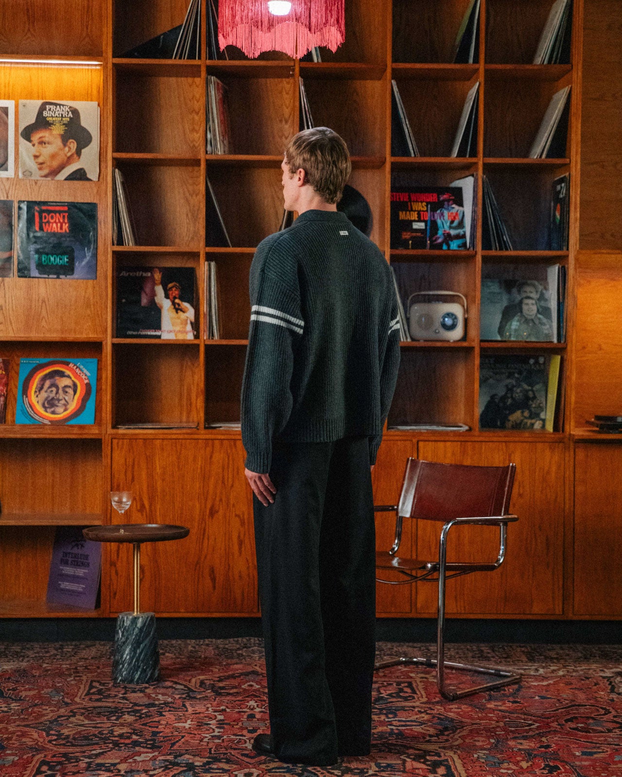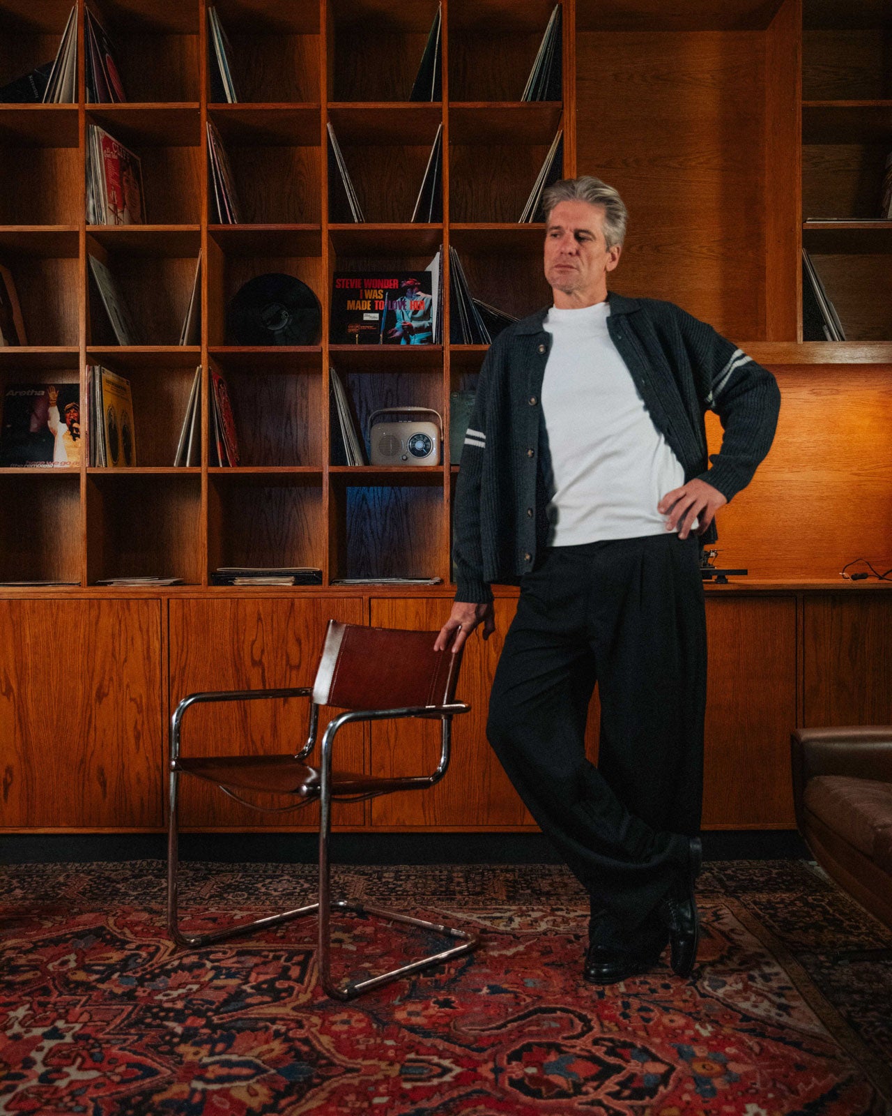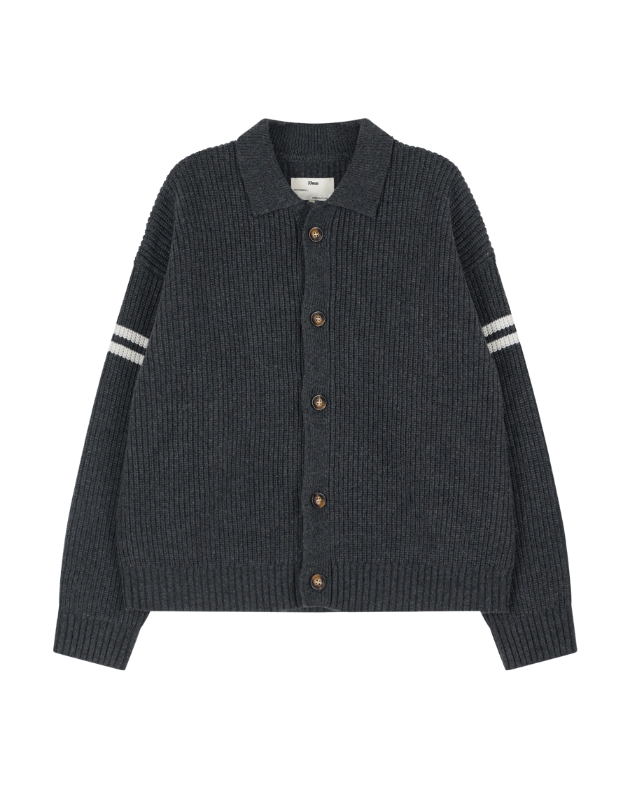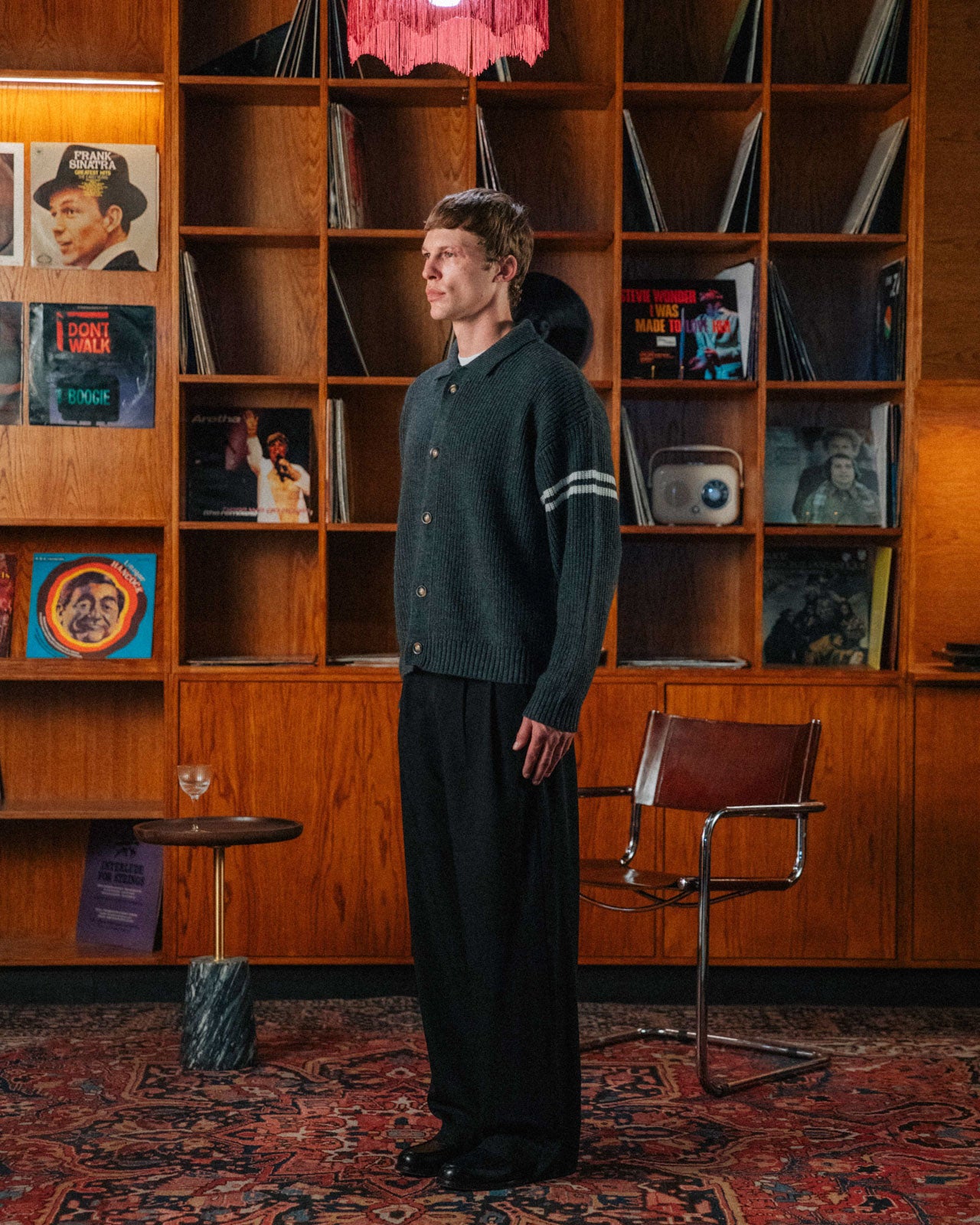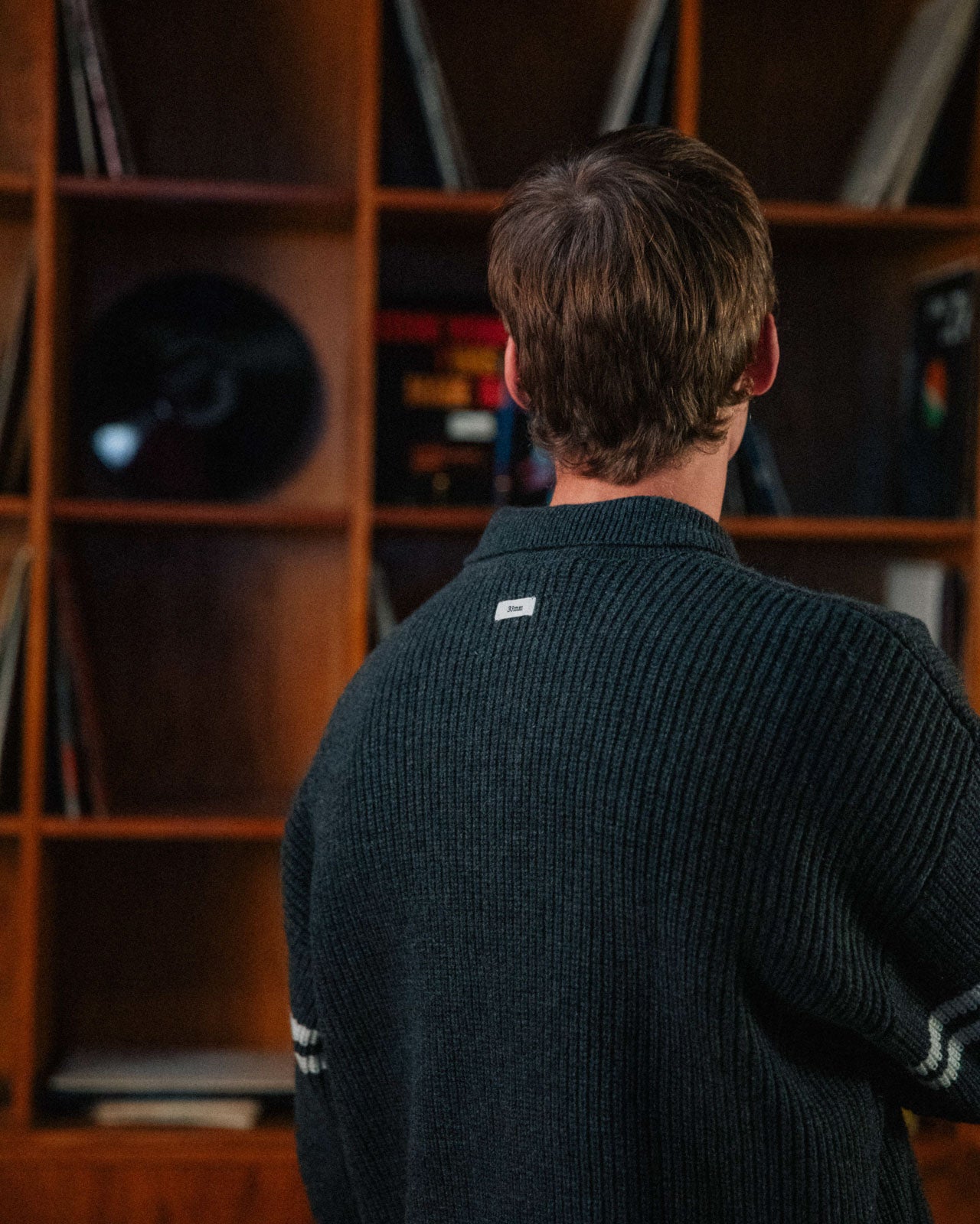 The wool cardigan young Al Pacino would have never taken off. With a relaxed collar, boxy fit and contrast stripes, Emmanuel is the perfect neutral for every day layering. Completed with horn buttons and branded 33mm tab.