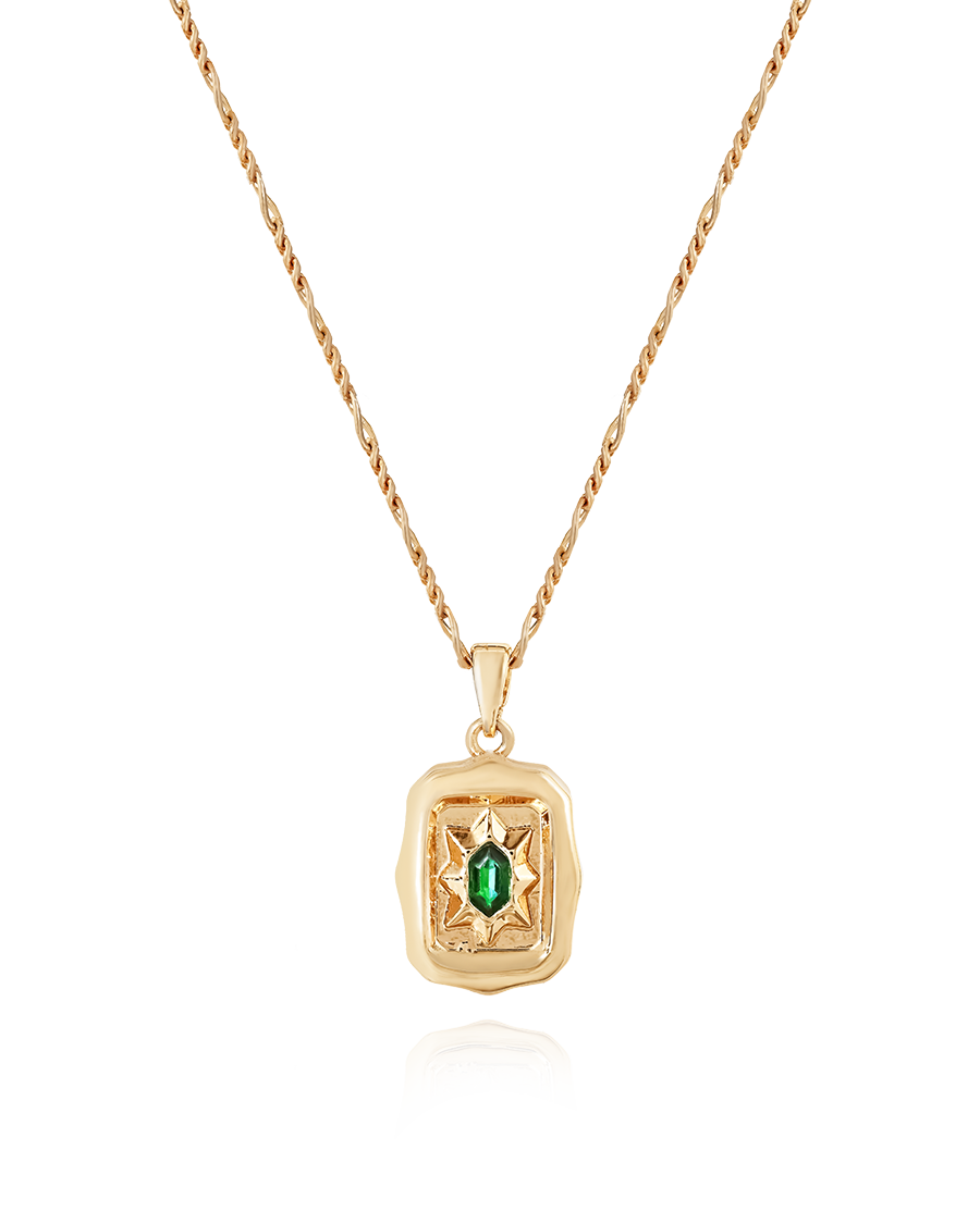 Material: 18k Gold Plated Brass with Emerald Green Cubic Zirconia