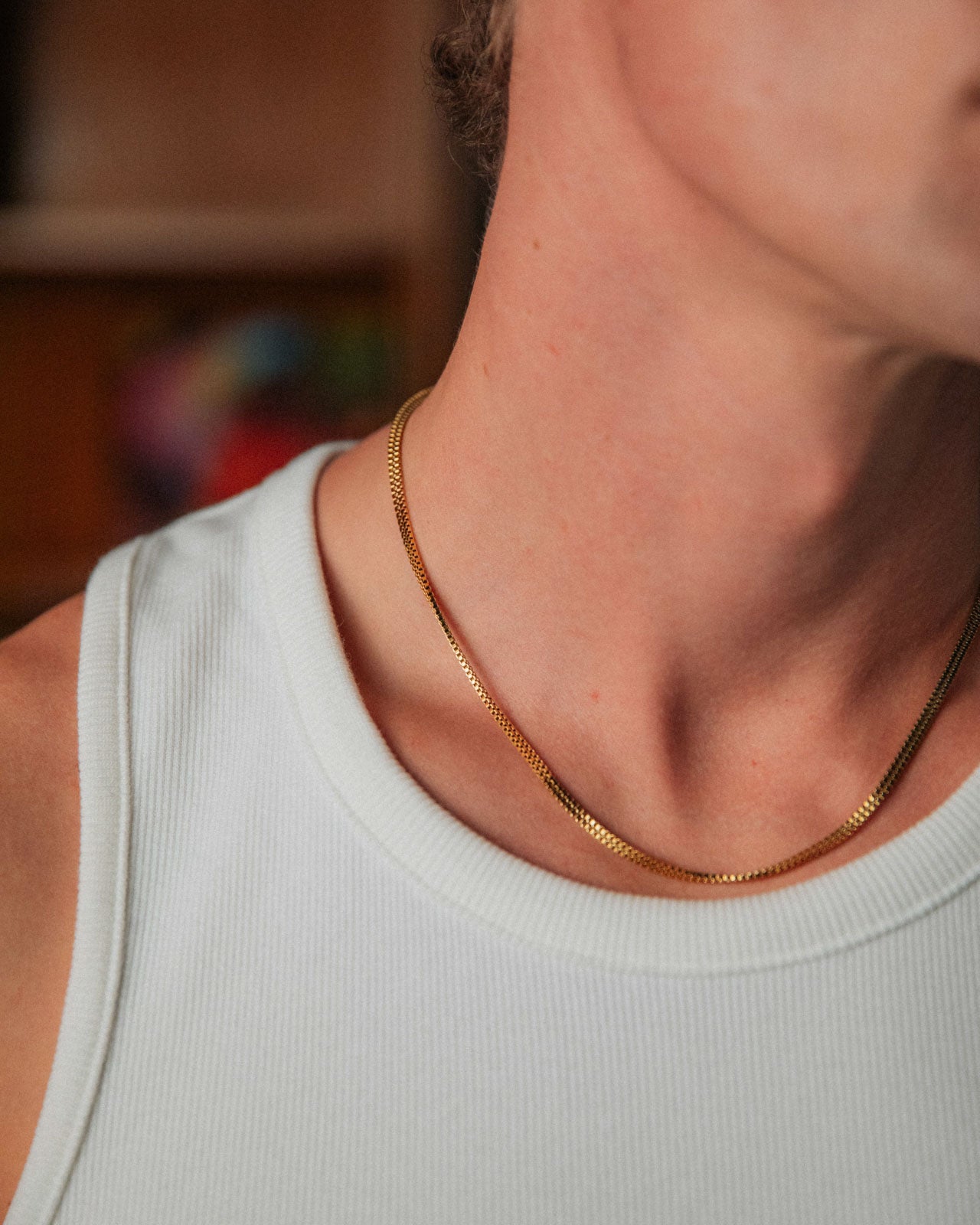 A double box chain necklace that proves gentle is powerful. For those who prefer to make more of a statement of their chain, or enjoy different depths and textures to layer with.