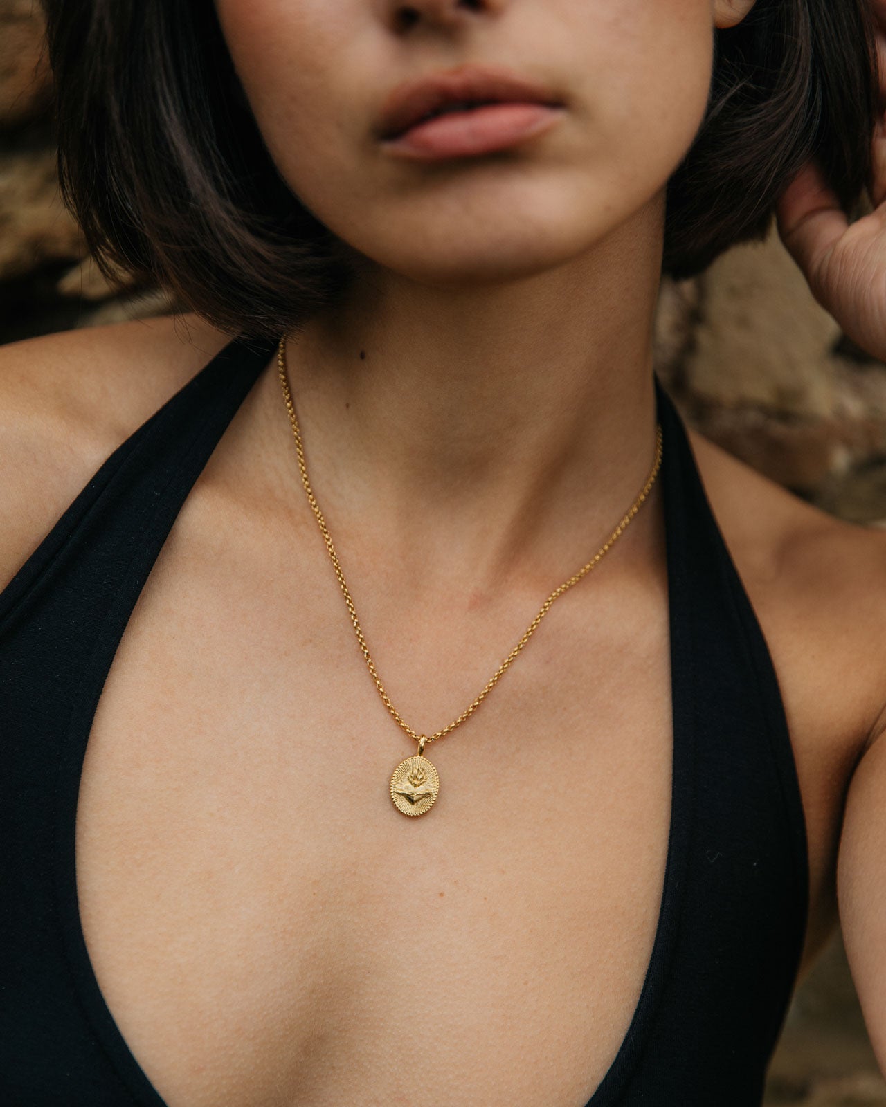 The Sacred heart, a symbol of devotion and rebirth. Worn as a reminder of the human form, and our closeness to the divine. Lazare is a delicate pendant perfect for layering.