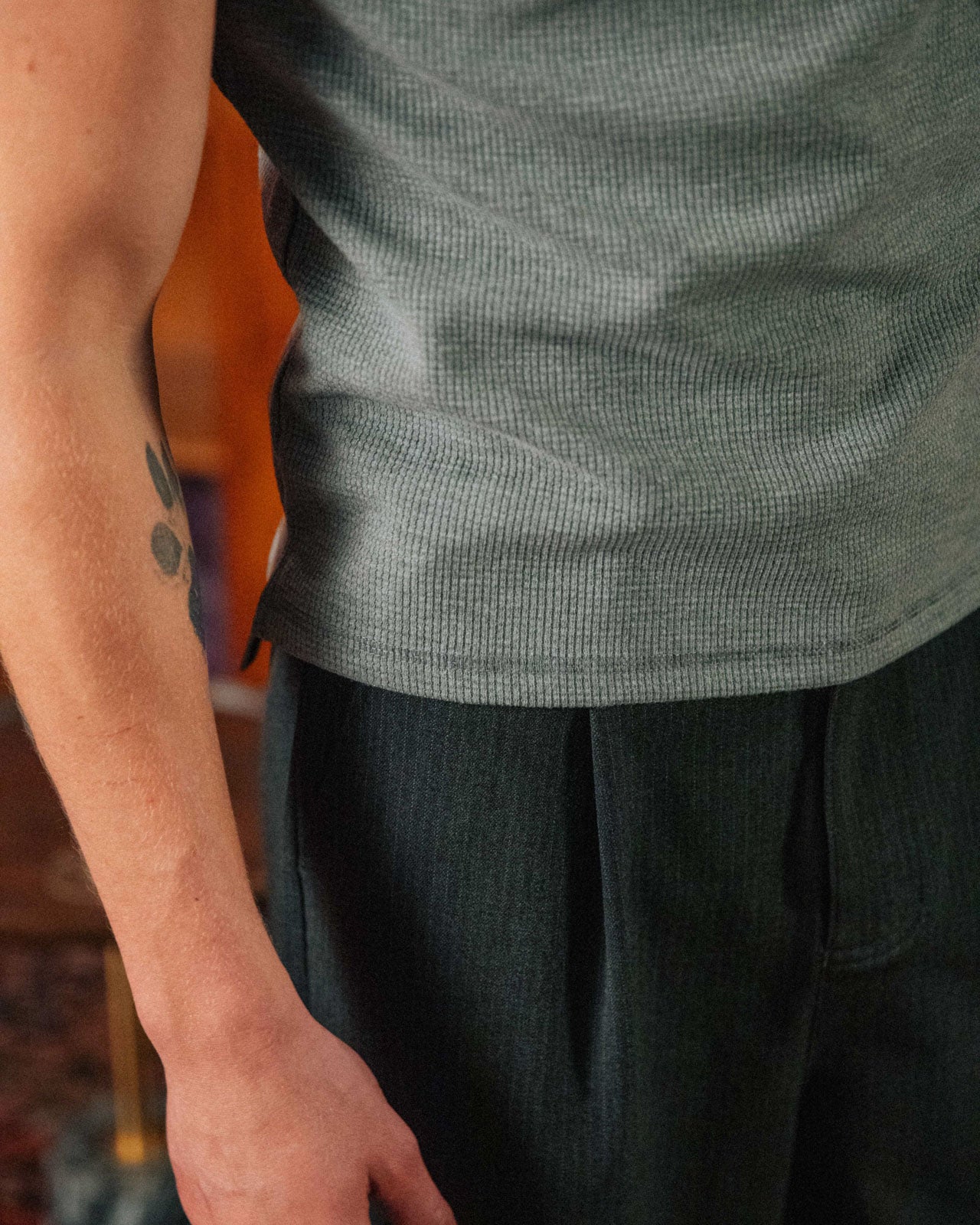 The waffle henley of a '90s actor straight off set. Nils skims the body with its slim fit and slight crop for a shrunken look. With the waffle texture continuing around the openings, it's a sleek layering piece beyond your average basic.