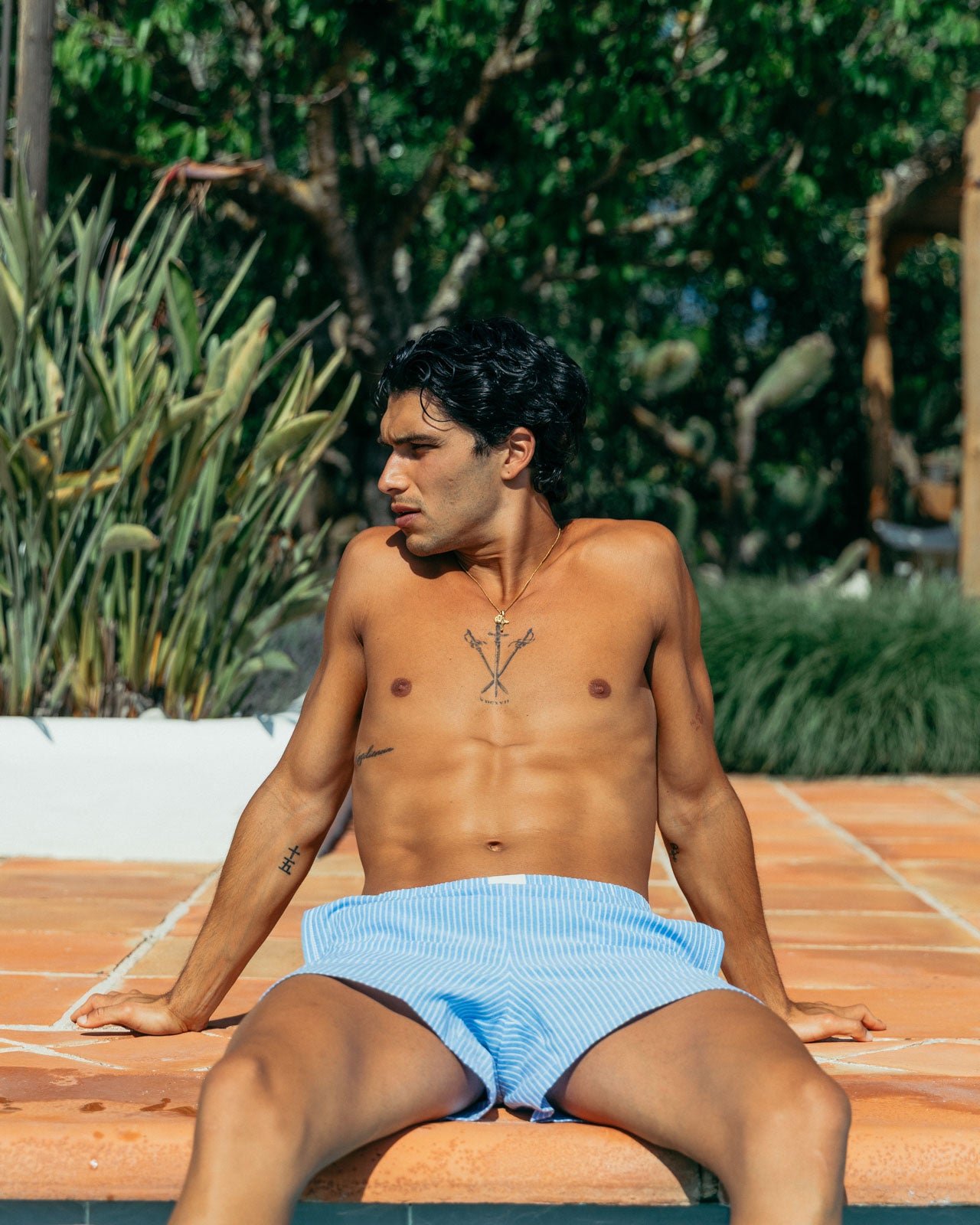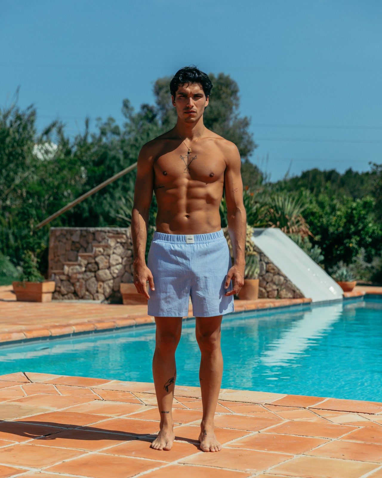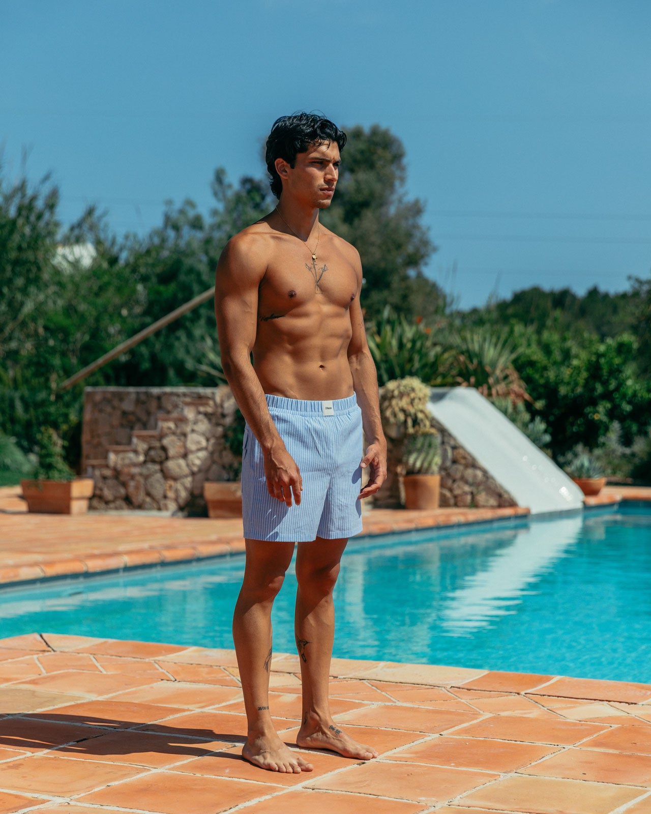 Tobias’ younger, and shorter, brother. A playful boxer short in your favourite striped fabric. 100% Cotton and indulgently comfortable.