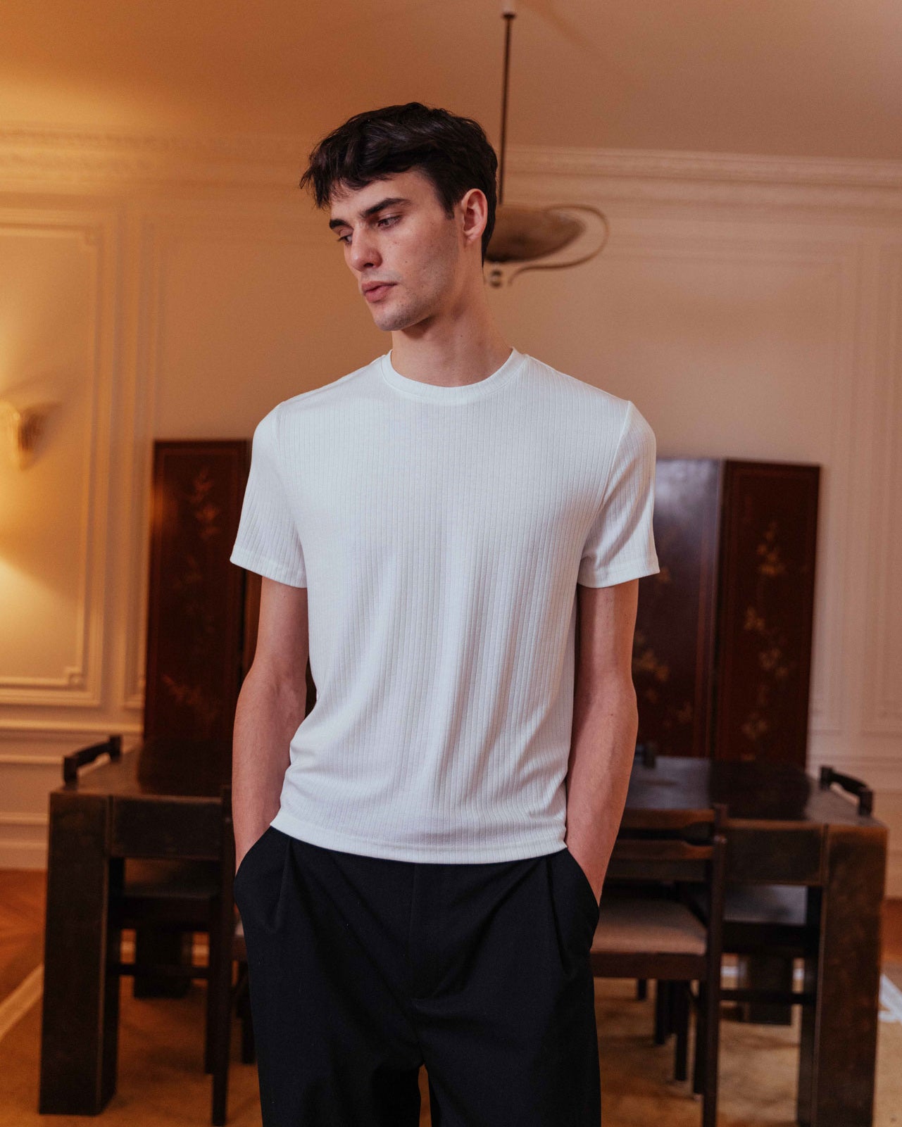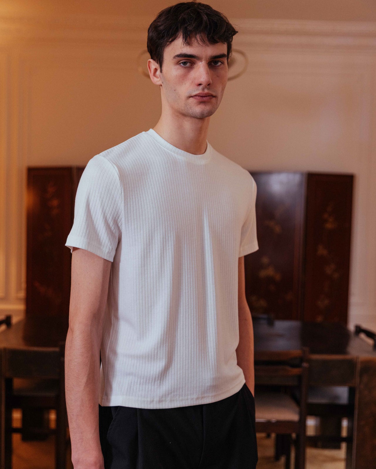 Introduce subtle intrigue to your basics with the delicate pointelle texture of Tyler. Favoured for its soft-touch feel, this tee drapes effortlessly over the body, making it the perfect base layer.