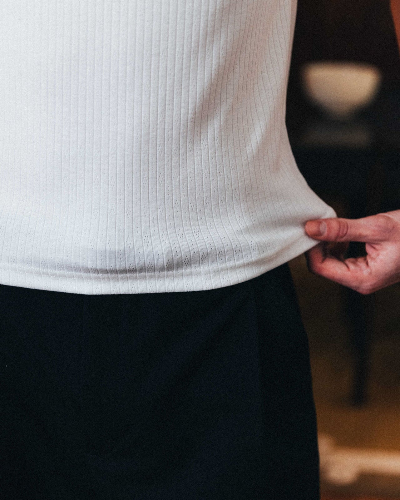 • Ribbed, pointelle, soft-touch fabric