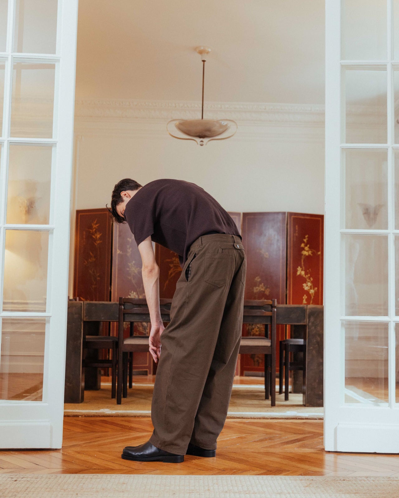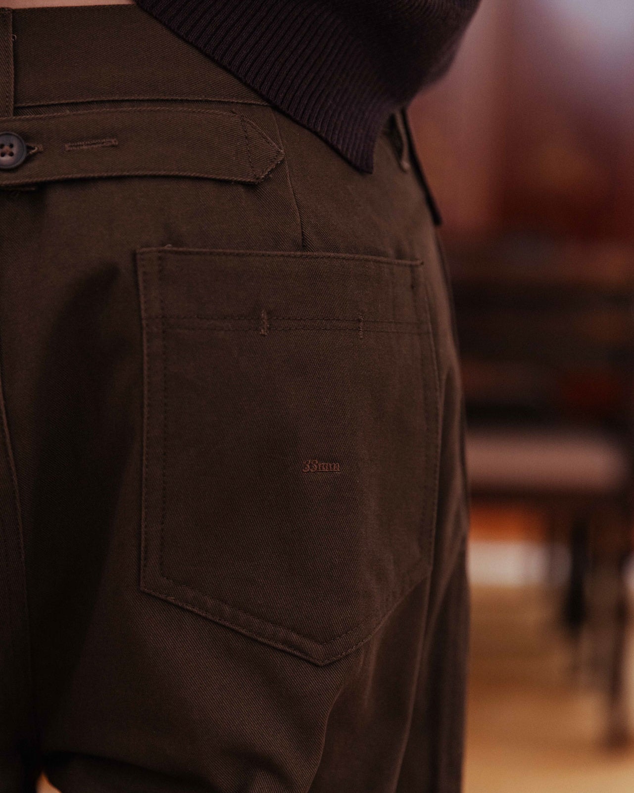 Vintage workwear inspired, these barrel leg twill trousers are designed to be as practical and durable as they are beautiful. See the waist adjuster on the reverse? We told you utility and aesthetics can coexist.